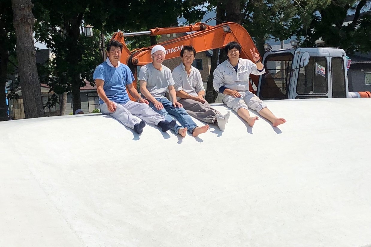 施工は、弊社から細川さん、荒川さん、私の3人、そして青野さんの計4人のチームで挑みました。